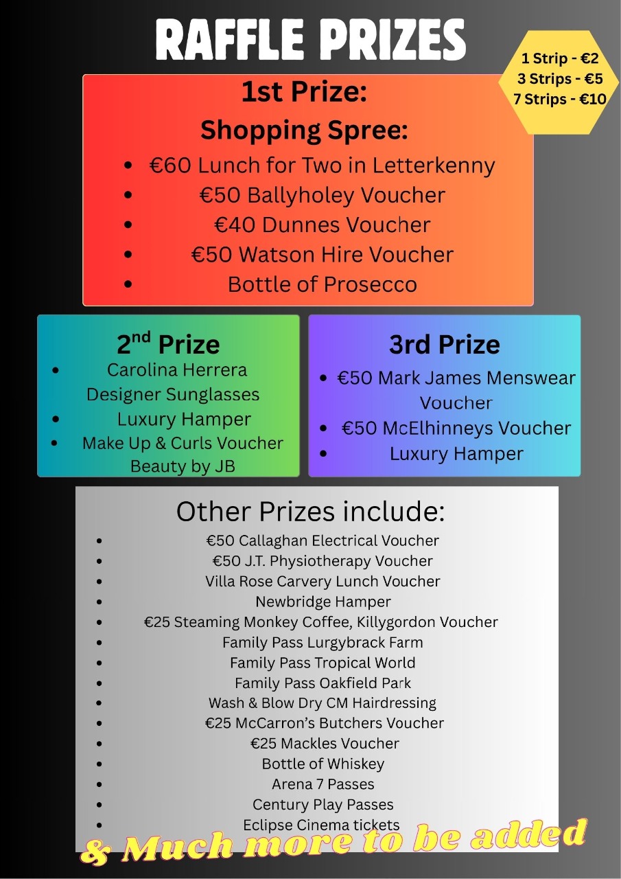 You can purchase tickets for our raffle online here or at the school anytime. We  will also be selling tickets on the night for a short time.